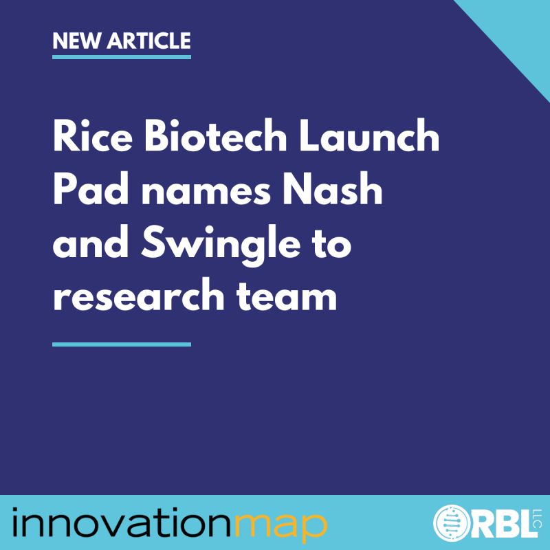 Nash and Swingle join leadership team at the Rice Biotech Launch Pad!